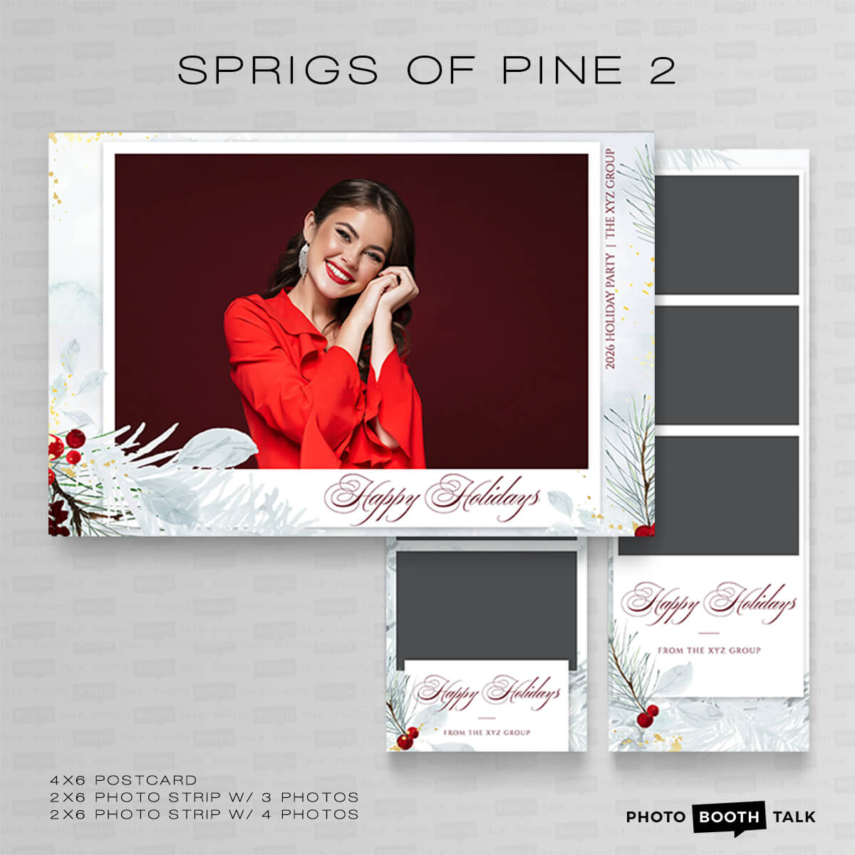 Sprigs of Pine - Holiday Themed Photo Booth Templates featuring pine branches, berries & watercolor elements